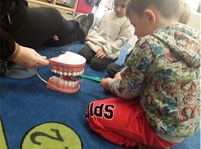 Teeth Cleaning –As part of the EYFS guidance we are working with our children and families to promote good dental hygiene. We do this by encouraging and supporting our children to brush their teeth once a day whilst at nursery.